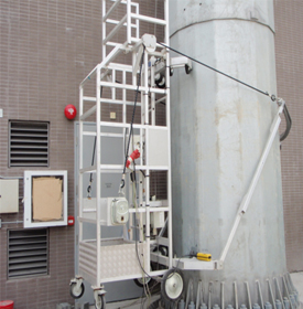 如何进入一个高层建筑照明? 桅杆吊笼沿着灯塔的柱子升高,专为那些在体育场、港口地区、机场...