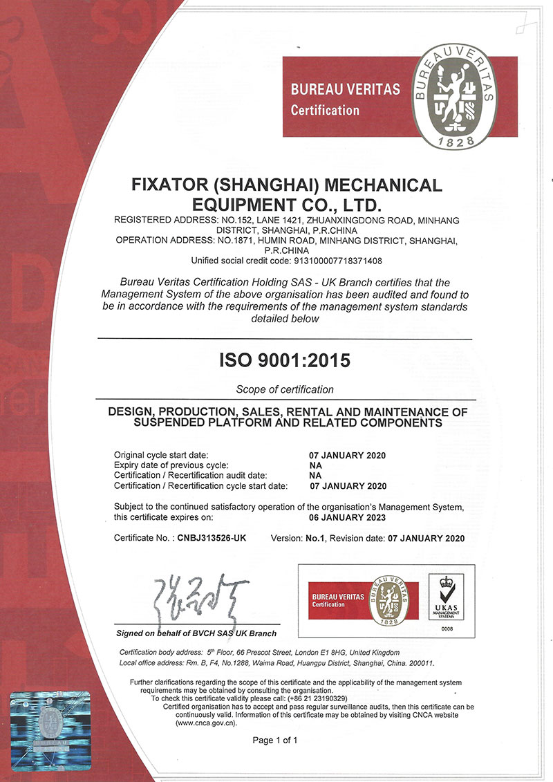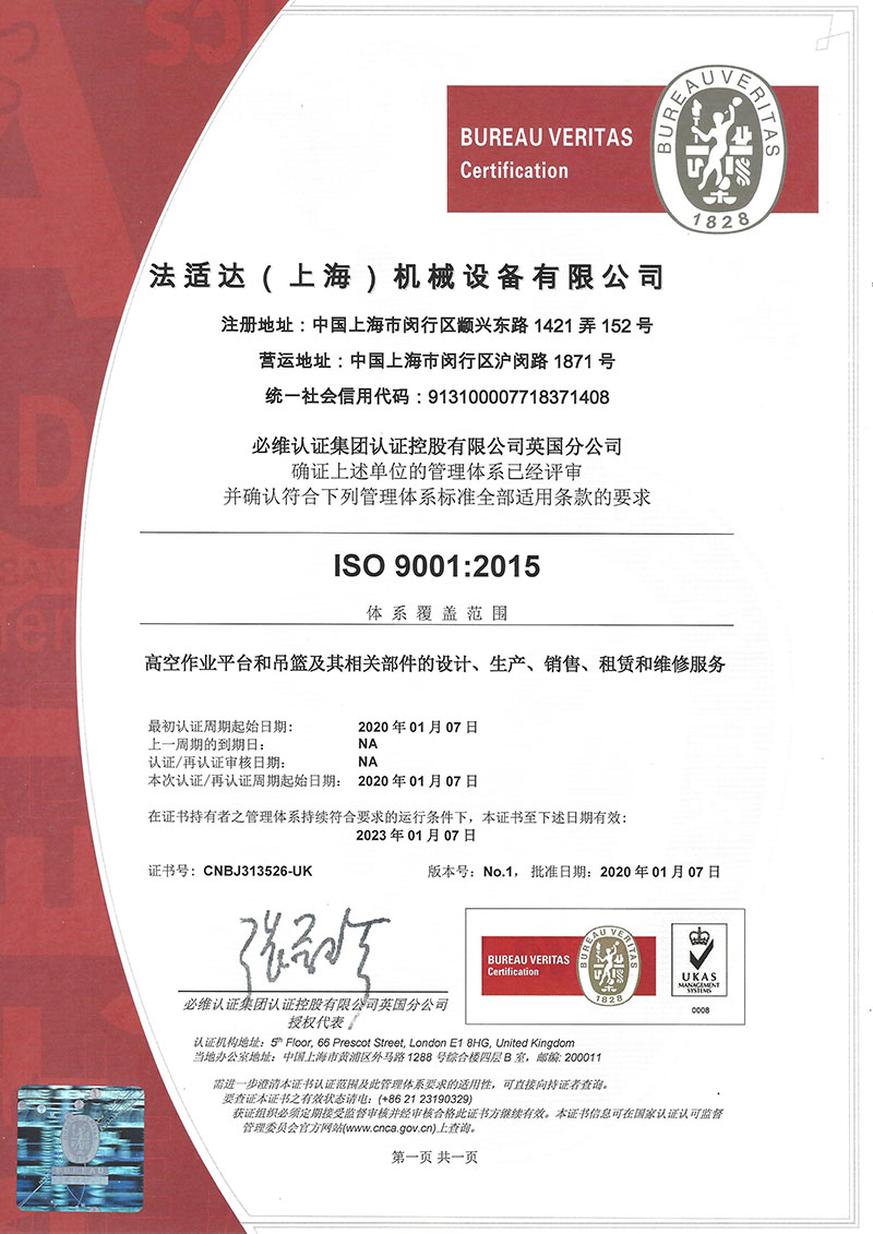 法适达公司ISO9001-2015通过